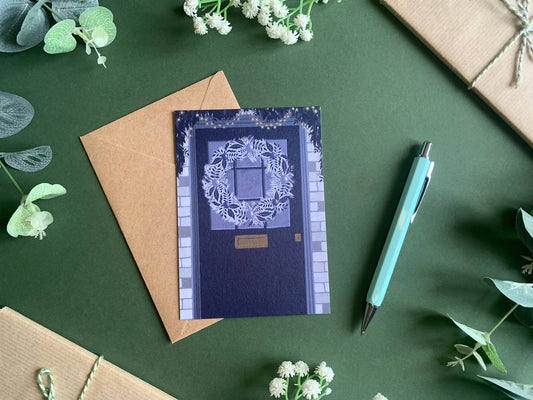 Winter Roses Wreath Christmas Card
